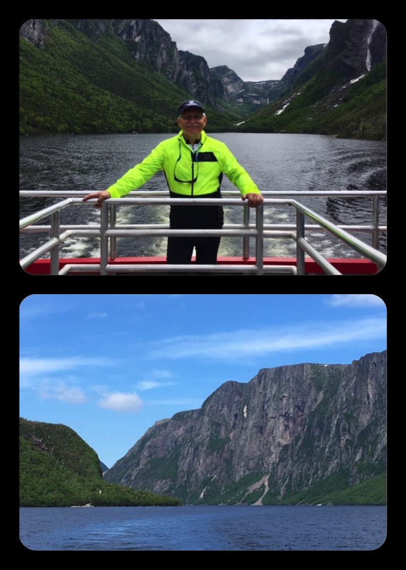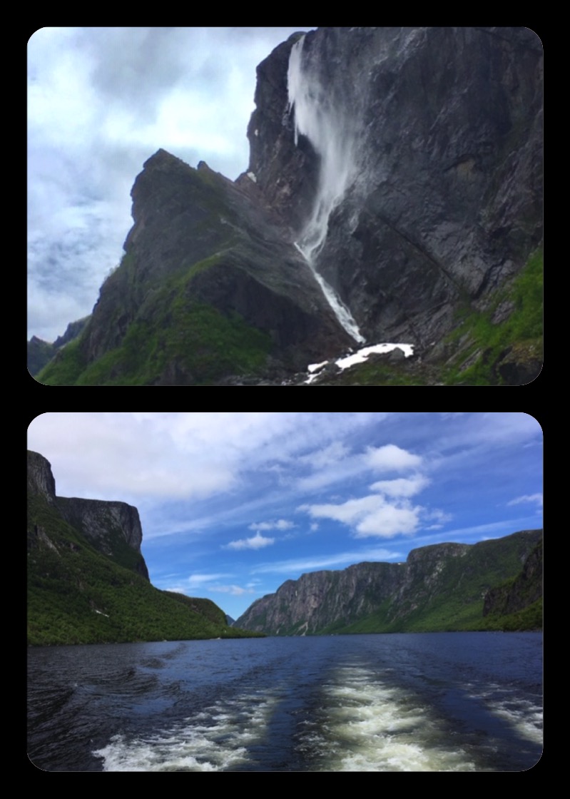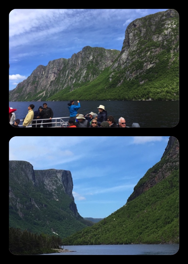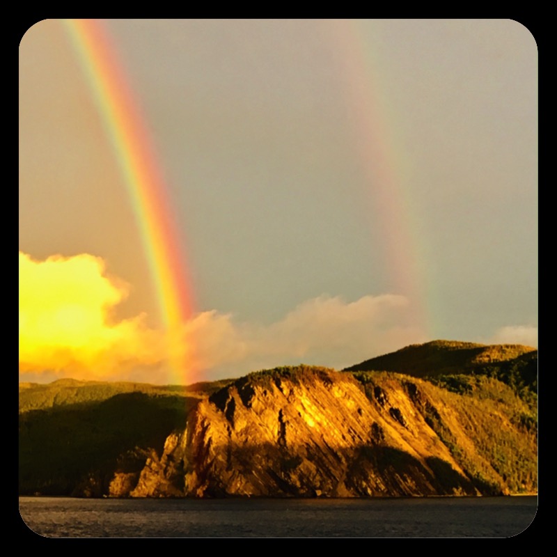 Today was Gros Morne activity day. That means we were free to enjoy the park with several options for activities and will resume biking tomorrow. I joined fellow bikers Keith and Jessica for a boat cruise on Western Brook Pond. Carved by hundreds of successive glaciers over the last 2 million years, this body of water was a fjord 9,000 years ago. But as the weight of the ice was removed, Newfoundland rebounded and the fjord became a freshwater lake about 100 ft above sea level. No words can describe the striking beauty of this place; just look at the pictures. A stunning rainbow at dusk made for the perfect end to a perfect day!